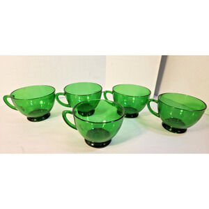 Anchor Hocking Forest Green Glass Coffee Punch Snack Cups Set of 5 1950's