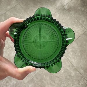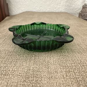 Anchor Hocking Forest Green Queen Mary Glass Ashtray / Coaster Vintage