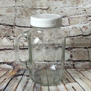 Clear Anchor Hocking Golden Harvest Cornucopia Drinking Jar with Handle and Lid