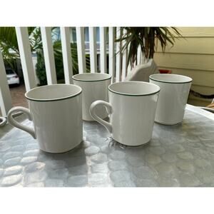 Set of 4 vintage, mint condition, Holiday Magic mugs by Anchor Hocking. Green trim with Christmas tree/toys/bear on front.
