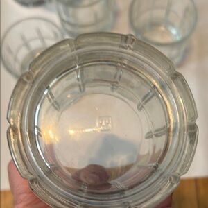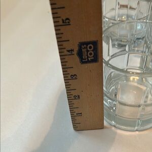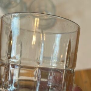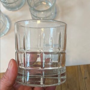 Elegant clear glass tumblers. Perfect for any dining setting. Durable and stylish. These are used some scratches