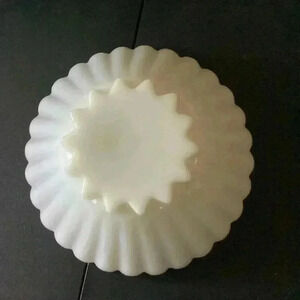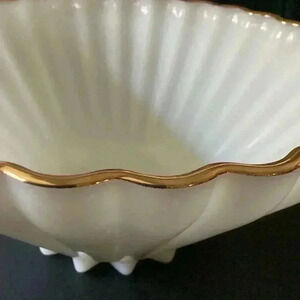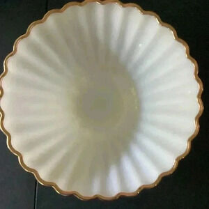 Anchor Hocking Milk Glass Bowl, Gold Scalloped Edge, Star Base, 11"