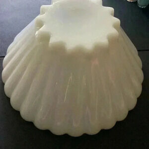 Anchor Hocking Milk Glass Bowl, Gold Scalloped Edge, Star Base, 11" Round Serving Bowl, Fire King Rachel Pattern, Mid Century Kitchen