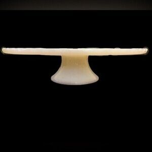 Beautiful milk glass cake stand plate with pedestal. Gold Foil “Fleur De Lis” pattern imprinted on the cake plate top.
