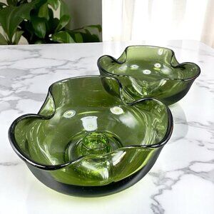Anchor Hocking Modern Avocado Candlestick Holders Green Set 2 Folded Edge Votive