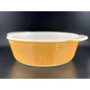 Vintage peach luster casserole dish by Anchor Hocking Ovenware. Made in the USA. Luster finish shows some normal wear/tear from use (see pictures). 7.25" diameter, 2.5" tall.