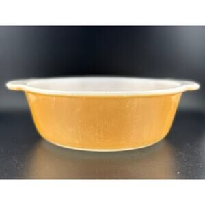 Vintage peach luster casserole dish by Anchor Hocking Ovenware. Made in the USA. Luster finish shows some normal wear/tear from use (see pictures). 7.25" diameter, 2.5" tall.
