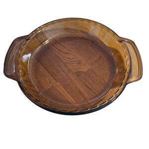 Anchor Hocking Presence Amber Pie Plate 9" deep dish brown 1qt scalloped edges