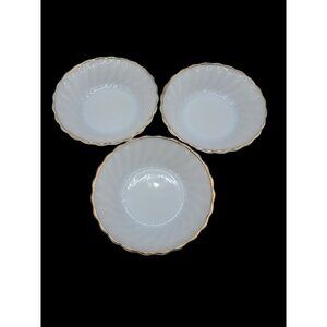 Anchor Hocking Ring Dish 3 White Milk Glass Bowl Scalloped Edges 4.75" Vintage
