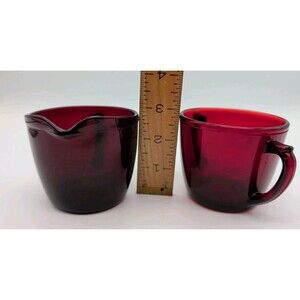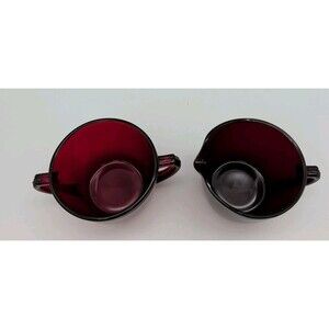 Anchor Hocking Royal Ruby Creamer and Open Sugar Bowl Set Red Glass Vintage