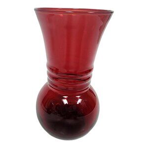 Anchor Hocking Royal Ruby Red Bud Vase Set 6 3/4" Ribbed Neck Romantic 30s Decor