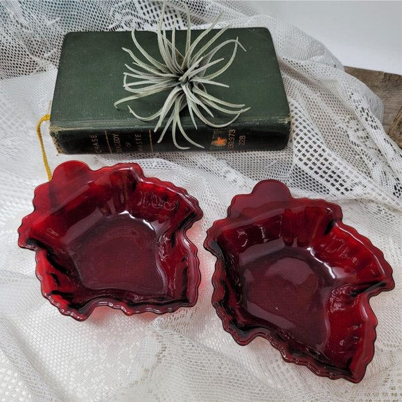 Anchor Hocking Ruby Red Glass Maple Leaf CandyDish
