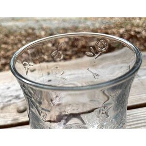 Once upon a time, in a quaint cottage surrounded by lush gardens, a glass artisan meticulously crafted the Anchor Hocking Savannah Clear Water Goblet. This elegant goblet, adorned with delicate embossed floral motifs, stands as a testament to timeless beauty and craftsmanship. Its clear, shimmering glass captures the essence of refreshing moments shared with loved ones. 1970's