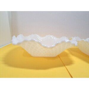 Set of two milk glass 7" diameter dessert or candy dishes in the quilted diamond pattern.