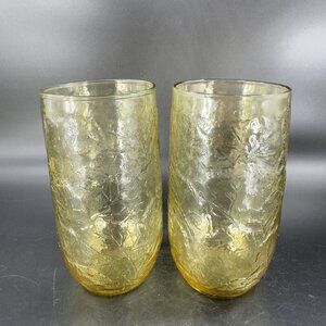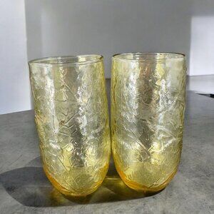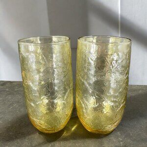 Anchor Hocking Sherwood Amber Glass Leaf Textured Glasses Vintage Glassware Set2