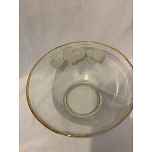 Clear Glass with Etched white grape leaves and gold trim.