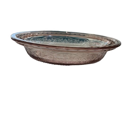 Anchor Hocking 9.25" Glass Embossed Deep Pie Baking Dish Clear Rose Pink Plate