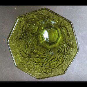 Anchor Hocking Vintage Green Footed Octagon Glass Vase with Leaves and Grapes