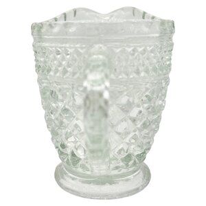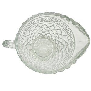 This charming Anchor Hocking vintage creamer pitcher tells a story of timeless elegance with its intricate Wexford diamond pattern and sturdy handle. From hosting afternoon teas to becoming a lovely collectible, this piece embodies a touch of nostalgia and sophistication, perfect for enhancing any glassware collection.