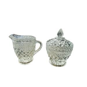 Anchor Hocking Wexford Crystal Clear Cut Glass Cream & Sugar Set Vintage