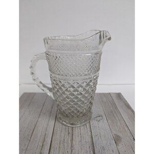 Anchor Hocking Wexford Pitcher #2 Clear Pressed Glass Diamond Point Vintage 9"