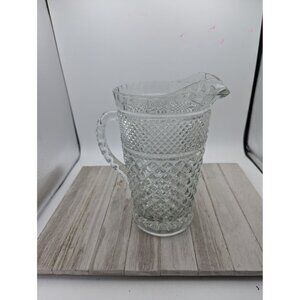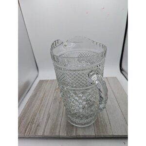 Anchor Hocking Wexford Pitcher #3 Clear Pressed Glass Diamond Point Vintage 9"