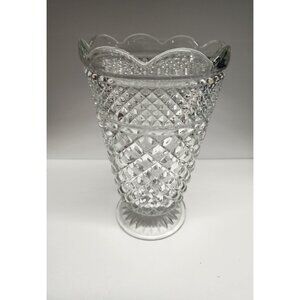 Anchor Hocking Wexford pattern 10" tall clear glass vintage flower vase. No chips or cracks.