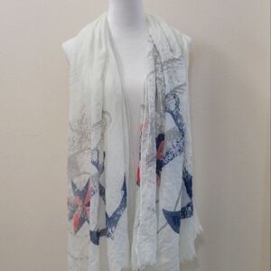 Anchor Nautical Marine Scarf Lightweight White for Women's - 69" x 28"