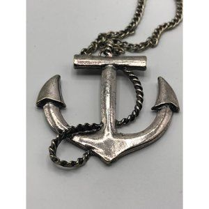 Anchor Nautical Ocean Sailing silver tone pendant chain necklace