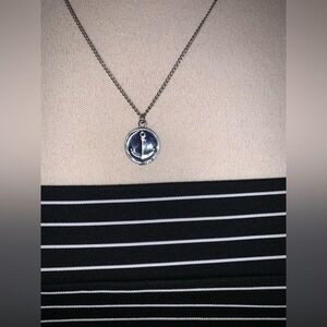 Anchor Necklace Silver Tone Pendant Charm Navy Blue