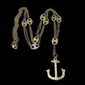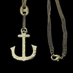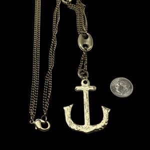 Anchor Necklace Y Drop Gold Tone Nautical Textured Pendant Statement Retro Beach