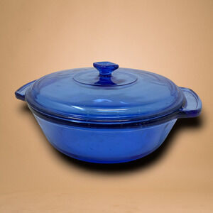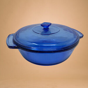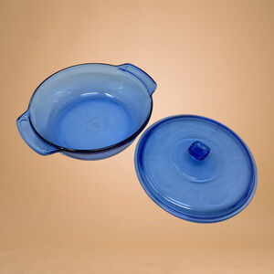 Anchor Ovenware Cobalt Blue Round Covered Casserole Dish 2 Qt 9” Oven Microwave