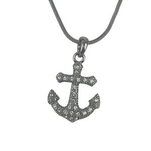 This anchor necklace boasts a captivating design with sparkling rhinestones that catch the light beautifully. The silver-tone chain complements the pendant, lending a touch of elegance and maritime charm to your attire. Its delicate craftsmanship makes it a statement piece that effortlessly elevates your style, blending nautical inspiration with timeless sophistication.