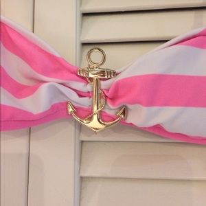 Size S; no padding, removable halter top strap. Tie the straps in the back
