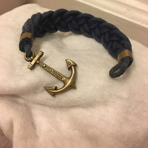 Size XS which is 6.5 inch wrist size. Will ship with original box and tag. Navy blue braid, gold anchor bracelet. Kiel James Patrick brand.