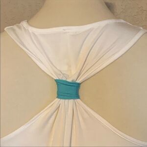 Super cute racerback tank with anchor graphic in size medium. Brand new boutique item. Made in the USA! Turquoise detail at back. Loose comfortable fit. Great for a day at the beach, pool or any day there’s warm weather. Photos are a part of the description. Color may vary with lighting or device.