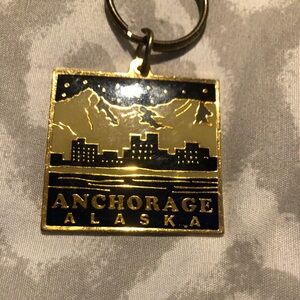 Anchorage Alaska Keychain with Gold and Black Design