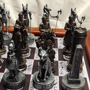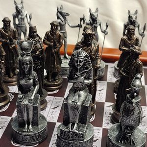 Ancient Egyptian Chess Set in Wood Storage Case/Game Board