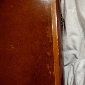 ๐ Chess Pieces in very good condition, 1 tower has chip; Wooden case has several areas with scratches, one areas where stain has been stripped to be refinished.