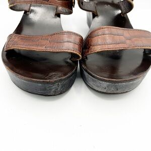 Ancient Greek Leather Brown Strappy Heel Strap Wedge Sandals Crocodile Size 39