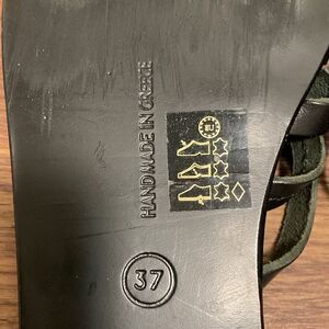 Ancient Greek NWOT multi strand black leather sandal with leather Daisy embellishments. Handmade by Greek Artisans using centuries old technique. A collaboration with artist Fabrizio Vitti. 100% chemical free leather. Handmade in Greece. Size 37 EU. Fits a size 6.5 US. NWOT. Never worn. Marks on outsole are from labels.