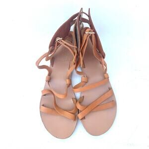 Ancient Greek Nephele Wing Leather Flats Sandals Gold Tan Platinum 41 Size 11