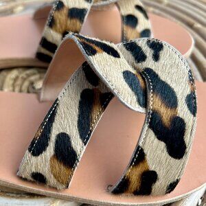 Rare and sold out — these Ancient Greek Sandals Desmos slides in pony leopard were purchased in St. Barts and are truly stunning in person.