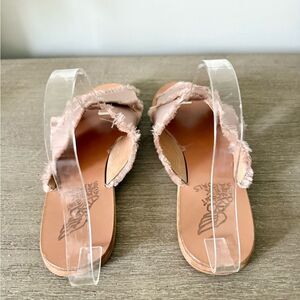 Ancient Greek Sandals Fray Detail Pale Pink Satin - Size 39
