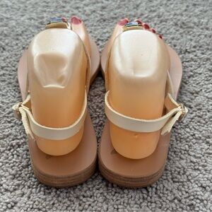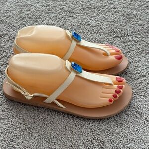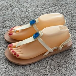 Ancient Greek Sandals Leather Cream Blue Jewel Accent Sz 8 EUR 38 Boho Gypsy