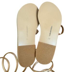 Handmade leather sandals with wraparound gladiator straps. Rose gold and tan. MSRP $325