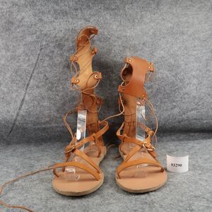 Used Ancient Greek Sandals Women EU 38/US 8 Sofia Tall Lace Up Gladiator Leather Handmade Mid Calf Tie