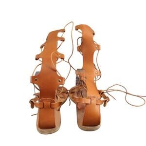 Used Ancient Greek Sandals Women EU 38/US 8 Sofia Tall Lace Up Gladiator Leather Handmade Mid Calf Tie