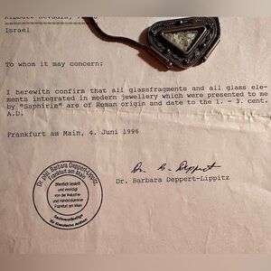 OK so Roman glass is not common. Roman glass with some kind of certification is less common. Roman glass with extremely detailed and masterful silversmithing is much less common. Now all of that with all of the certification, 2000 years old, from Israel, dated to the 1st to 3rd century, that is INSANELY RARE! my jeweller thinks I’m crazy to sell it for less than $2500 - $3000