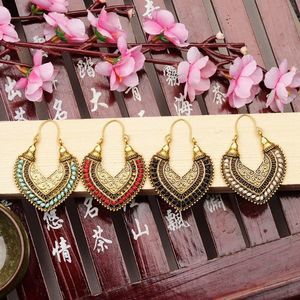 Vintage Ethnic tribal style Retro Heart-shaped Carved Openwork Flower crochet Classic blue gold color hollow hoop Earring